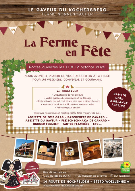 Au menu : Foie gras, Fleischschnaka de canard, Burger fermier🍔, Baeckeoffe de canard, tarte flambée aux grattons🔥, soupe de potimarron, knack maison, bretzel🥨, etc…